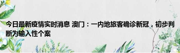 今日最新疫情实时消息 澳门:一内地旅客确诊新冠,初步判断为输入性个案