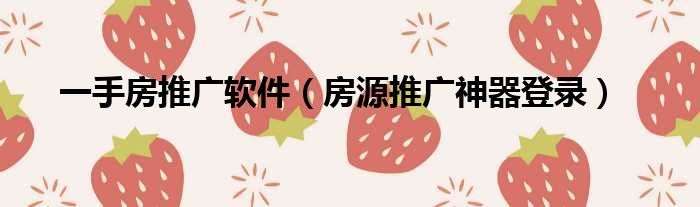 大家好,今天小六子来为大家解答以下的问题,关于一手房推广软件,房源推广神器登录这个很多人还不知道,现在让我们一起来看看吧!