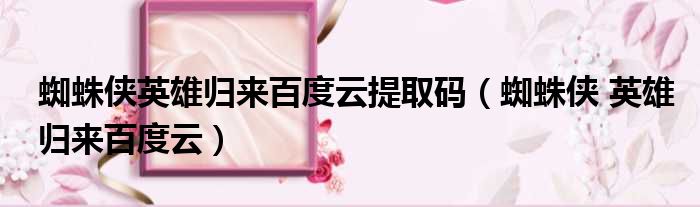 蜘蛛侠英雄归来百度云提取码(蜘蛛侠 英雄归来百度云)