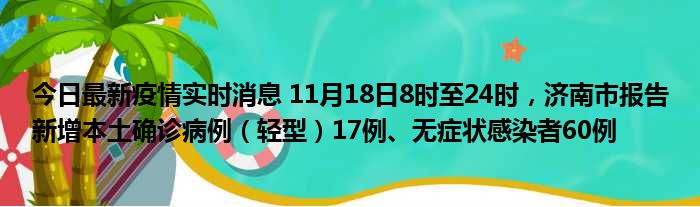您的位置:首页 >动态频道 > 聚焦疫情 > 今日最新疫情实时消息 11月18日8时至24时,济南市报告新增本土确诊病例(轻型)17例、无症状感染者60例 2022-12-14 23:18:22 • 来源: 导读 免责声明:本文由用户上传,如有侵权请联系删除! 上一篇:今日最新疫情实时消息 海南11月18日新增本土确诊4例、本土无症状7例 下一篇:今日最新疫情实时消息 广西11月18日新增本土确诊6例、本土无症状72例