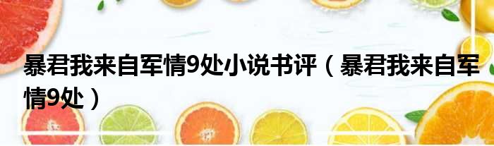 导读 大家好,今天小六子来为大家解答以下的问题,关于暴君我来自军情9处小说书评,暴君我来自军情9处这个很多人还不知道,现在让我们一起来看看