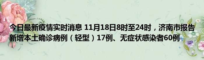 您的位置:首页 >动态频道 > 聚焦疫情 > 今日最新疫情实时消息 11月18日8时至24时,济南市报告新增本土确诊病例(轻型)17例、无症状感染者60例 2022-12-15 00:38:16 • 来源: 导读 免责声明:本文由用户上传,如有侵权请联系删除! 上一篇:今日最新疫情实时消息 海南11月18日新增本土确诊4例、本土无症状7例 下一篇:今日最新疫情实时消息 广西11月18日新增本土确诊6例、本土无症状72例