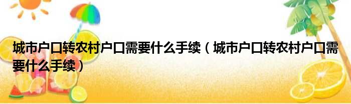 城市户口转农村户口需要什么手续(城市户口转农村户口需要什么手续)