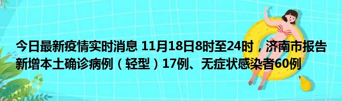您的位置:首页 >动态频道 > 聚焦疫情 > 今日最新疫情实时消息 11月18日8时至24时,济南市报告新增本土确诊病例(轻型)17例、无症状感染者60例 2022-12-15 02:38:17 • 来源: 导读 免责声明:本文由用户上传,如有侵权请联系删除! 上一篇:今日最新疫情实时消息 海南11月18日新增本土确诊4例、本土无症状7例 下一篇:今日最新疫情实时消息 广西11月18日新增本土确诊6例、本土无症状72例