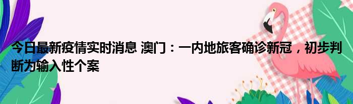 今日最新疫情实时消息 澳门:一内地旅客确诊新冠,初步判断为输入性个案