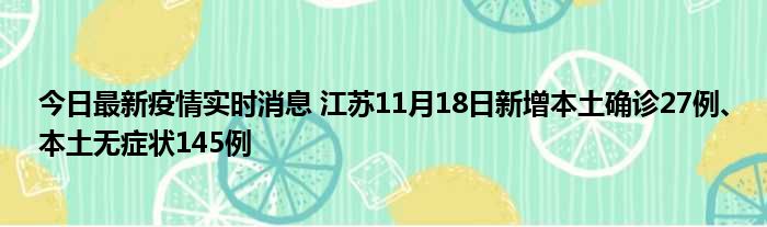 今日最新疫情实时消息 江苏11月18日新增本土确诊27例、本土无症状145例