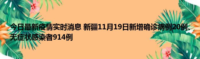 11月20日,新疆卫健委通报:11月19日0时至24时,新疆维吾尔自治区新增确诊病例20例,新增无症状感染者914例,新增确诊病例治愈出院6例,