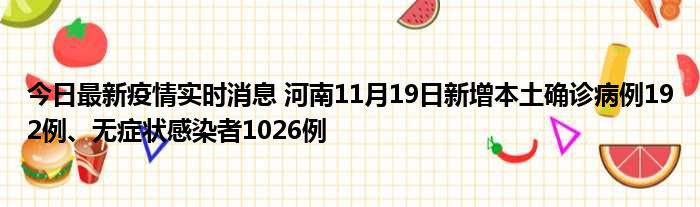 今日最新疫情实时消息 河南11月19日新增本土确诊病例192例、无症状感染者1026例