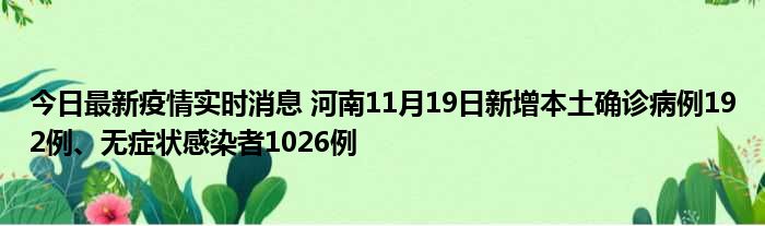 今日最新疫情实时消息 河南11月19日新增本土确诊病例192例、无症状感染者1026例