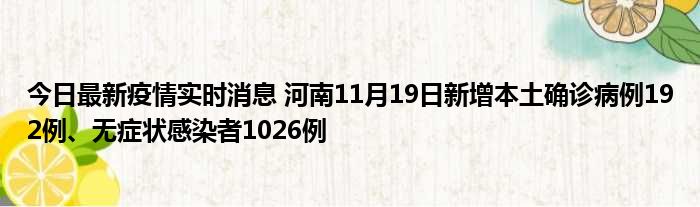 今日最新疫情实时消息 河南11月19日新增本土确诊病例192例、无症状感染者1026例
