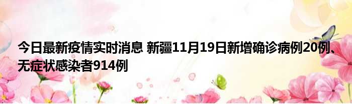11月20日,新疆卫健委通报:11月19日0时至24时,新疆维吾尔自治区新增确诊病例20例,新增无症状感染者914例,新增确诊病例治愈出院6例,