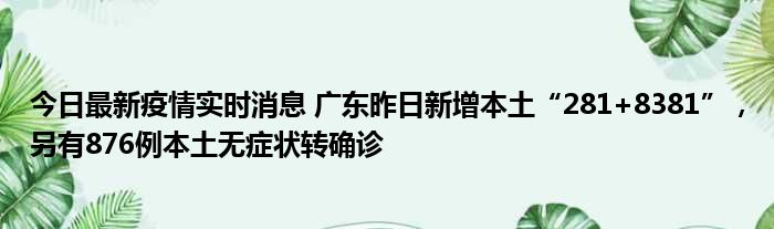 今日最新疫情实时消息 广东昨日新增本土“281+8381”,另有876例本土无症状转确诊