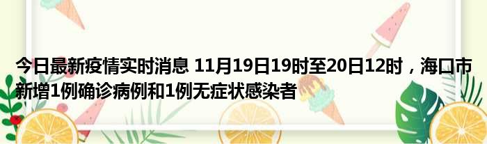 今日最新疫情实时消息 11月19日19时至20日12时,海口市新增1例确诊病例和1例无症状感染者
