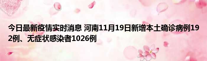 今日最新疫情实时消息 河南11月19日新增本土确诊病例192例、无症状感染者1026例