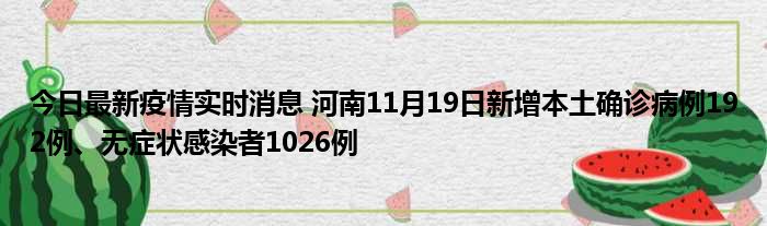 今日最新疫情实时消息 河南11月19日新增本土确诊病例192例、无症状感染者1026例