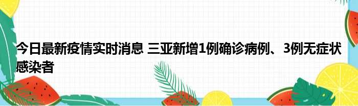 今日最新疫情实时消息 三亚新增1例确诊病例、3例无症状感染者