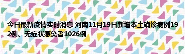 今日最新疫情实时消息 河南11月19日新增本土确诊病例192例、无症状感染者1026例