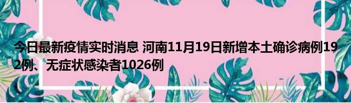 今日最新疫情实时消息 河南11月19日新增本土确诊病例192例、无症状感染者1026例