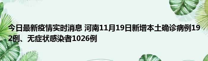 今日最新疫情实时消息 河南11月19日新增本土确诊病例192例、无症状感染者1026例