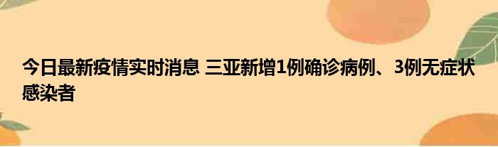 今日最新疫情实时消息 三亚新增1例确诊病例、3例无症状感染者