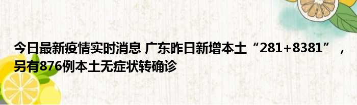 今日最新疫情实时消息 广东昨日新增本土“281+8381”,另有876例本土无症状转确诊