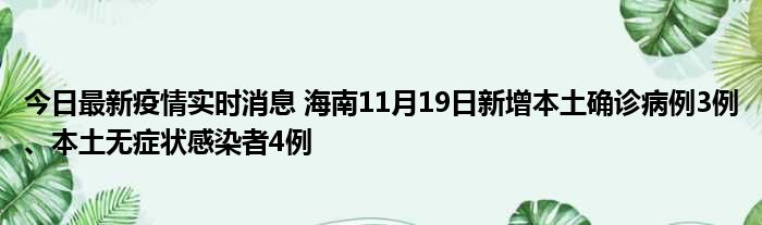 今日最新疫情实时消息 海南11月19日新增本土确诊病例3例、本土无症状感染者4例