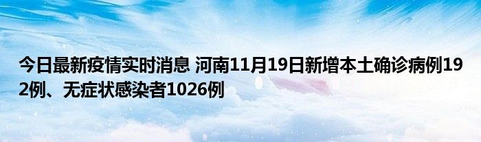 今日最新疫情实时消息 河南11月19日新增本土确诊病例192例、无症状感染者1026例