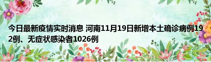 今日最新疫情实时消息 河南11月19日新增本土确诊病例192例、无症状感染者1026例