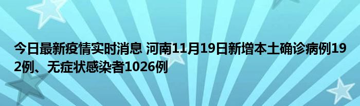 今日最新疫情实时消息 河南11月19日新增本土确诊病例192例、无症状感染者1026例