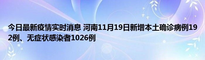 今日最新疫情实时消息 河南11月19日新增本土确诊病例192例、无症状感染者1026例