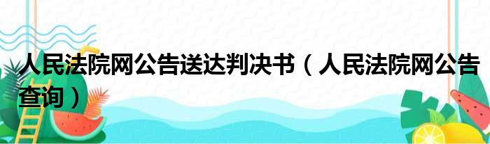 导读 大家好,今天小六子来为大家解答以下的问题,关于人民法院网公告送达判决书,人民法院网公告查询这个很多人还不知道,现在让我们一起来看看
