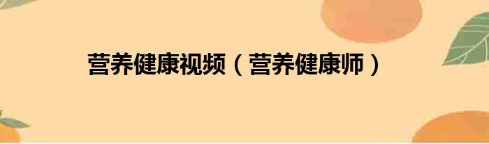 大家好,今天小六子来为大家解答以下的问题,关于营养健康视频,营养健康师这个很多人还不知道,现在让我们一起来看看吧!