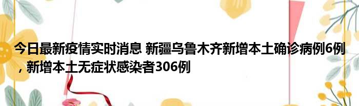 今日最新疫情实时消息 新疆乌鲁木齐新增本土确诊病例6例,新增本土无症状感染者306例
