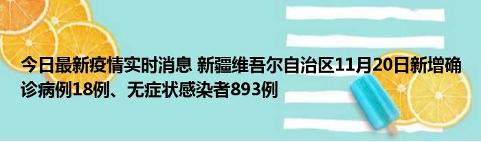 新疆卫健委通报,11月20日0时至24时,新疆维吾尔自治区新增确诊病例18例,新增无症状感染者893例,新增确诊病例治愈出院14例,新增无症状
