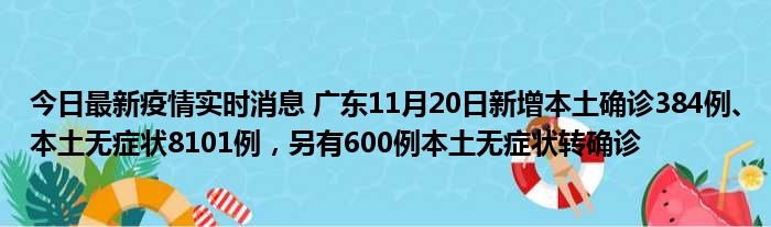 今日最新疫情实时消息 广东11月20日新增本土确诊384例、本土无症状8101例,另有600例本土无症状转确诊