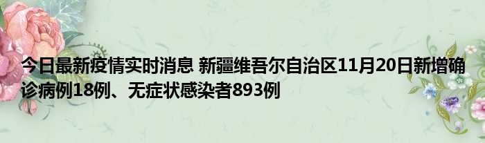 新疆卫健委通报,11月20日0时至24时,新疆维吾尔自治区新增确诊病例18例,新增无症状感染者893例,新增确诊病例治愈出院14例,新增无症状