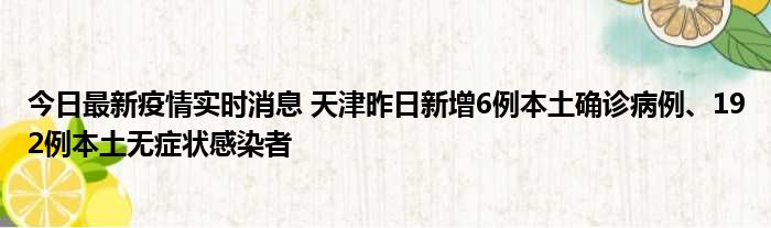 今日最新疫情实时消息 天津昨日新增6例本土确诊病例、192例本土无症状感染者