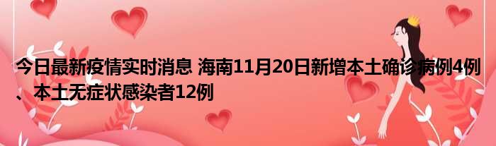 今日最新疫情实时消息 海南11月20日新增本土确诊病例4例、本土无症状感染者12例