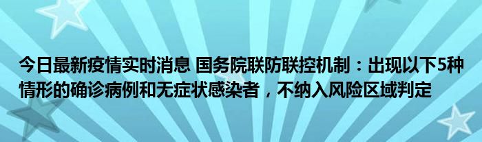 今日最新疫情实时消息 国务院联防联控机制:出现以下5种情形的确诊病例和无症状感染者,不纳入风险区域判定