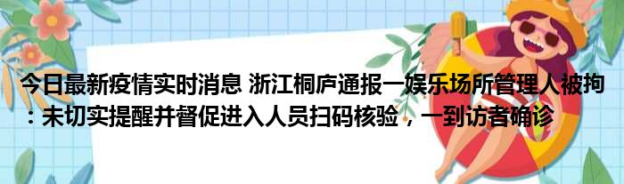 今日最新疫情实时消息 浙江桐庐通报一娱乐场所管理人被拘:未切实提醒并督促进入人员扫码核验,一到访者确诊