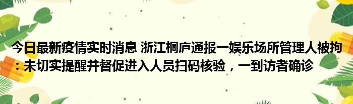 今日最新疫情实时消息 浙江桐庐通报一娱乐场所管理人被拘:未切实提醒并督促进入人员扫码核验,一到访者确诊