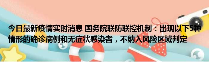 今日最新疫情实时消息 国务院联防联控机制:出现以下5种情形的确诊病例和无症状感染者,不纳入风险区域判定