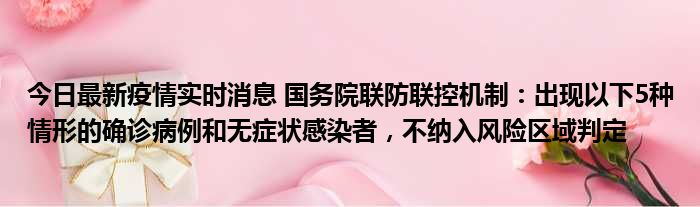 今日最新疫情实时消息 国务院联防联控机制:出现以下5种情形的确诊病例和无症状感染者,不纳入风险区域判定