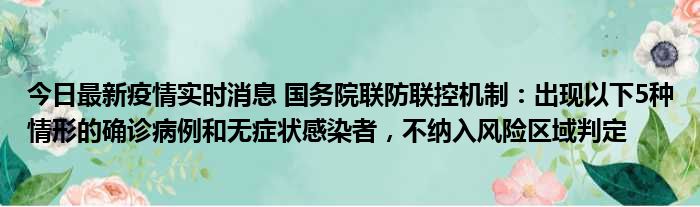 今日最新疫情实时消息 国务院联防联控机制:出现以下5种情形的确诊病例和无症状感染者,不纳入风险区域判定