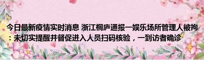 今日最新疫情实时消息 浙江桐庐通报一娱乐场所管理人被拘:未切实提醒并督促进入人员扫码核验,一到访者确诊