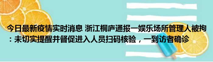 今日最新疫情实时消息 浙江桐庐通报一娱乐场所管理人被拘:未切实提醒并督促进入人员扫码核验,一到访者确诊