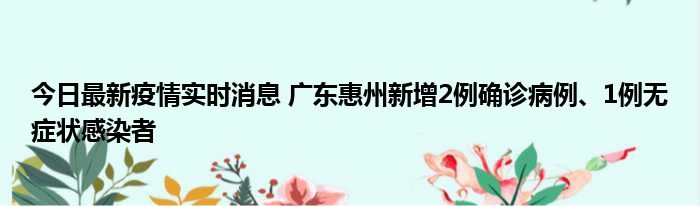 今日最新疫情实时消息 广东惠州新增2例确诊病例、1例无症状感染者