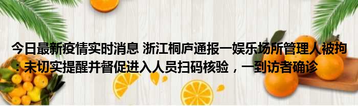 今日最新疫情实时消息 浙江桐庐通报一娱乐场所管理人被拘:未切实提醒并督促进入人员扫码核验,一到访者确诊