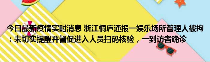 今日最新疫情实时消息 浙江桐庐通报一娱乐场所管理人被拘:未切实提醒并督促进入人员扫码核验,一到访者确诊