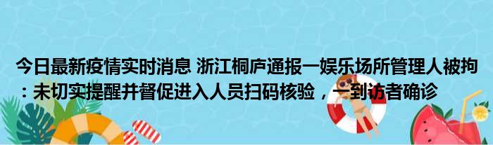 今日最新疫情实时消息 浙江桐庐通报一娱乐场所管理人被拘:未切实提醒并督促进入人员扫码核验,一到访者确诊